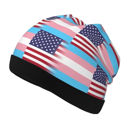 American Transgender Pride Flag Kids Leisure Elastic Knitted Hat Junior Large Size Knit Cap Child Beanie Black 1