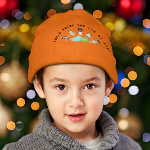 More information about Unity Day - in A World Be Kind Kids Earth Anti Bullying Orange Kids Beanie Hat for for Girls Boys Children Cap Winter Knitted Chemo Cancer Headwear Accessories Gifts Decoration