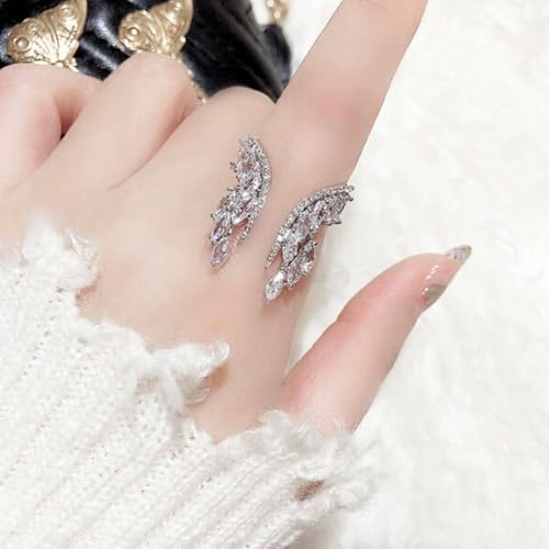 HOT ! White Gold Plated Cubic Zirconia Inlaid Creative Chic Angel Wing Design Adjustable Statement Ring Personalized Accessory Ideal for Women's Daily Casual Wear Party Holiday Anniversary Love Jewelry Gift