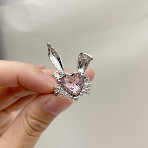 HOT ! Heart-Shaped Bunny Ring for Women Pink CZ Rabbit Crystal Finger Adjustable Engagement Wedding April Birthstone Cute Rabbits Graduation Promise Ring Comfort Fit Band Fashion Jewelry for Daughters Mom