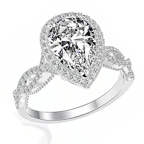 HOT ! TIGRAOE 1.5CT Engagement Ring for Women Teardrop Cubic Zirconia Wedding Band Halo Twisted Pear CZ Promise Anniversary Ring Size(6-10) silverA-7