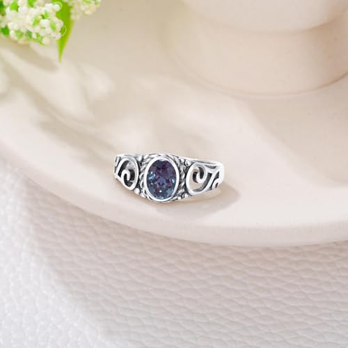 • 3. Ring Specifications - Metal: Solid 925 sterling silver. Main Stone: 7x5mm lab-created alexandrite. Weight about 2.5g. No fading, no rusting, friendly to sensitive skin. Ring Size: Available in all sizes 4 to 11, including half sizes