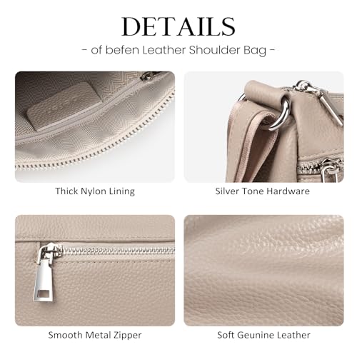 HOT ! befen Genuine Leather Crossbody Purses for Women, Woman Medium Pocketbooks Shoulder Bags Handbags with Multi Zipper Pockets