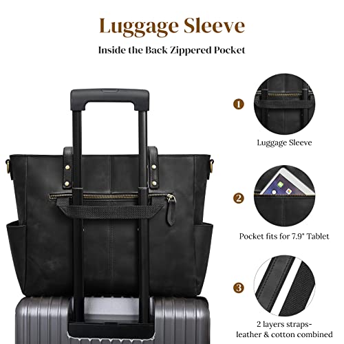 • 【Humanized Detail Design】All the straps of this laptop tote bag for women are made of genuine leather + cotton webbing. Inside the back zipper pocket comes a BRAIDED TAPE for SUITCASES, you can put this tote on the suitcase when you’re on a travel or business trip