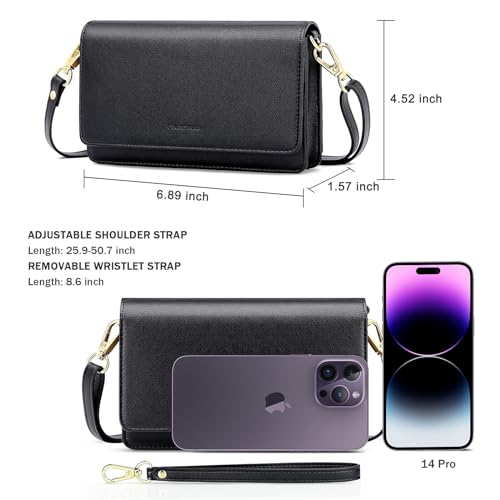 • Small Crossbody Bags: This versatile crossbody purse for women is idea for evening outings, serving as a stylish small phone purse. Measuring 6.89" x 1.57" x 4.52" (L x W x H), it is a compact mini women`s crossbody handbags designed for convenience. It features 12 card slots, a zippered cash wallet, a slim purse compartment, a main compartment for essentials, and a back phone bag, making it both functional and fashionable