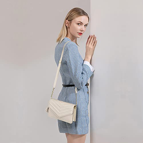• CHIC AND STYLISH DESIGN: This cross body bag for woman with quilted design and tassel as decoration. Strong magnetic snap button flap, easy open and close. Removable half metal chain shoulder strap can make this women small crossbody bag use as a over shoulder purse, crossbody purse, clutch purse, side purse. Highly recommend for its trendy and simple-fashion outlook