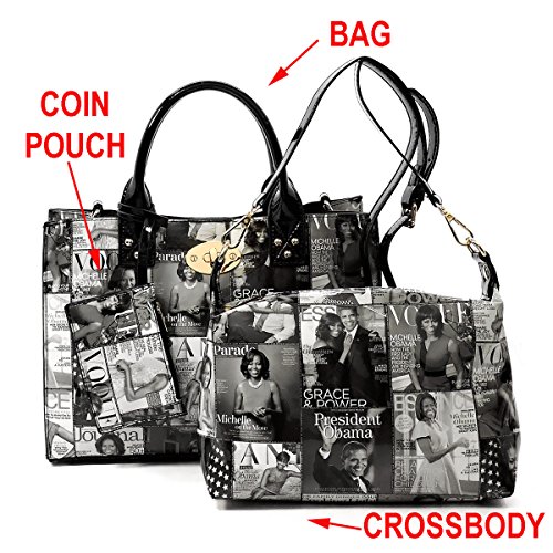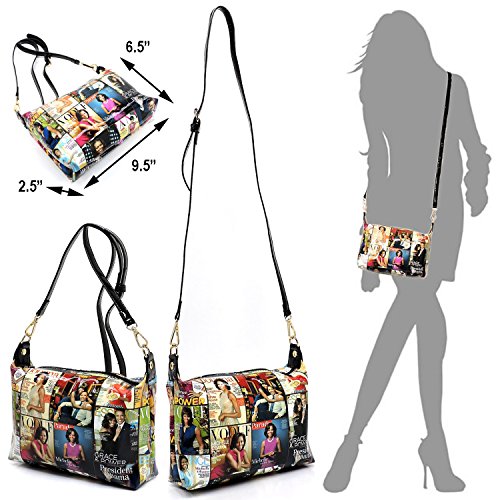 More information about AMY&JOEY Glossy magazine cover collage crossbody bag purses Michelle Obama mini handbag (MULTI/BLACK)