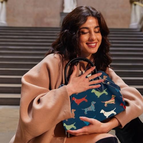 Signare Tapestry Hand Shoulder Bag Cross Body Purses Handbag Satchel Bag for Women In Dachshund Dog Design |CONV-DACH 5