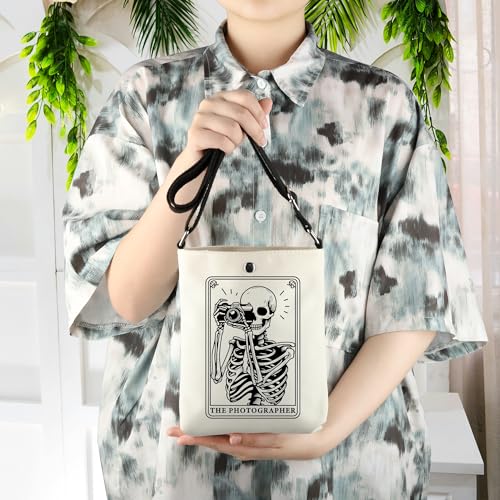 HOT ! WCGXKO The Photographer Tarot Card Crossbody Bag Photographer Skull Tarot Gift Witchy Tarot Card Gift Skeleton Camera Gift
