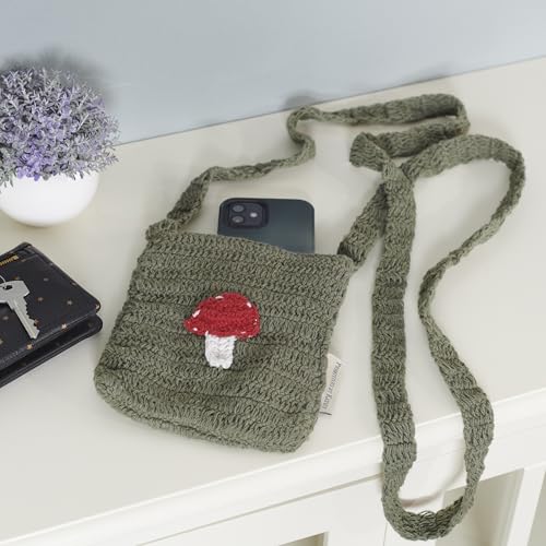• EVERYDAY ACCESSORY: Cotton crossbody bag displaying a nature inspired design of a mushroom