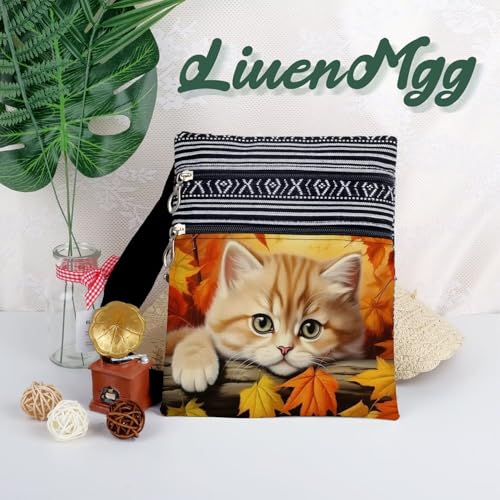 Maple Cat Messenger Bag Small Ethnic Pattern Printed Adjustable Strap Crossbody Zipper Bag Maple Cat Phone Bag Wallet Cute Shoulder Handbag for Women 6