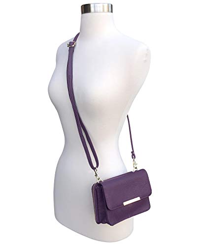 More information about Roma Leathers Mini Leather Cross Body Purse - Premium Purple Embossed Cowhide Leather - Backside Detachable Wallet - Adjustable and Removable Shoulder Strap - Designed in USA