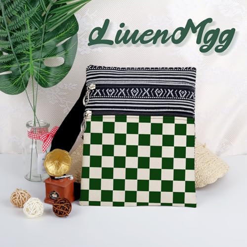 Green Plaid Messenger Bag Small Ethnic Pattern Printed Adjustable Strap Crossbody Zipper Bag Green Plaid Phone Bag Wallet Cute Shoulder Handbag for Women 7
