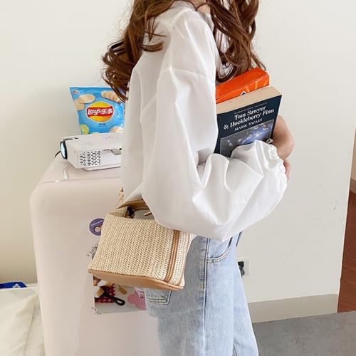Straw Crossbody Bags for Women Trendy Summer Beach Vacation Outfit Casual Versatile Patched Design Handbag Bucket Tote 7