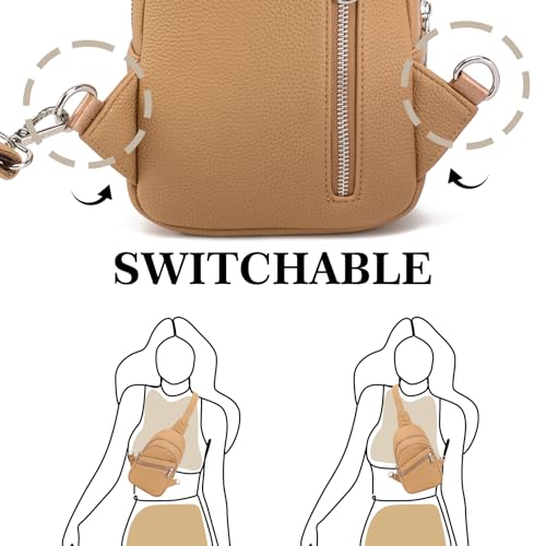 INICAT Crossbody Sling Bags Vegan Leather Fanny Packs for Women (True Khaiki) 5