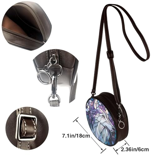 More information about Stained Glass Pomsky Floral Art Women Round Crossbody Bags Leather Sling Bag Purse