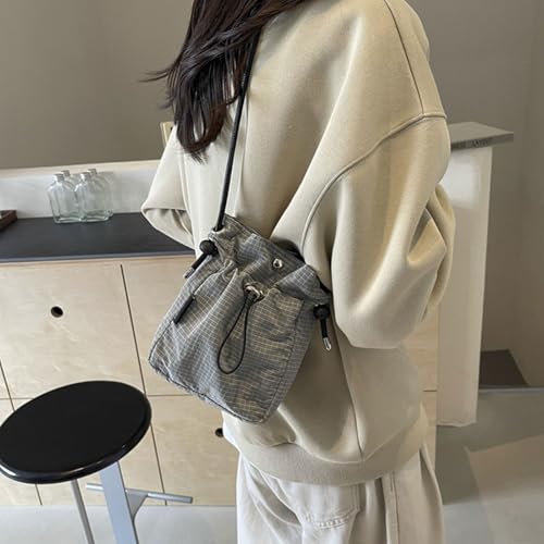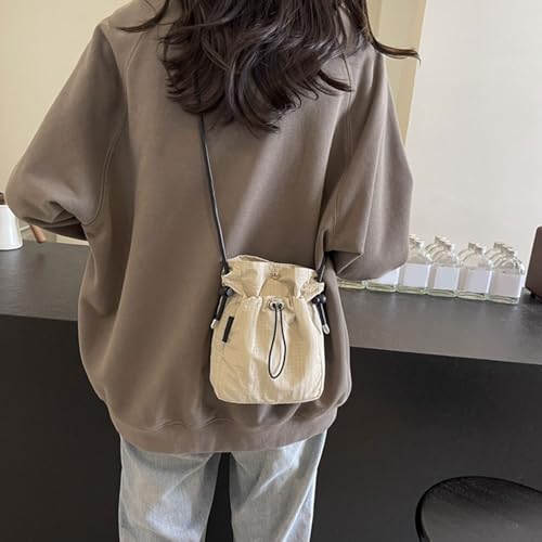HOT ! Fashionable Canvas Shoulder Bag for Mobile Phones Lightweight Crossbody Purse Drawstring Bucket Bags for Daily Use