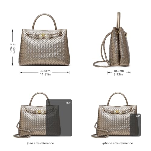 HOT ! Woven Bag for Women Crossbody Handbag: Vegan Leather Small Tote Purse - Trendy Shoulder Handbag - Bowknot Satchels (Large, Light Copper and Silver)