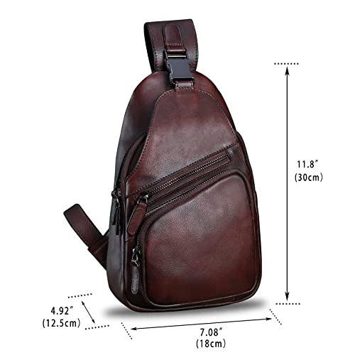 Genuine Leather Sling Bag Crossbody Purse Handmade Hiking Daypack Motorcycle Bag Retro Shoulder Backpack Vintage Chest Bag (Coffee) 7