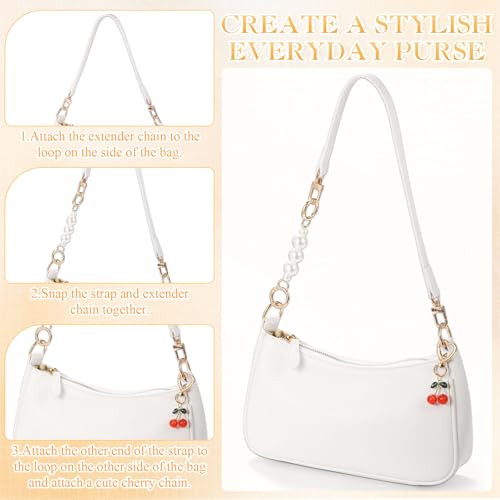 • Leather Craftsmanship: crafted from leather with a durable polyester lining and metal zipper, this shoulder bag exudes luxury; The matching extender chains and cherry bag charm bring a dash of elegance and style, ensuring this white hand bag is both fashionable and long-lasting