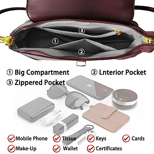 • 【Small Bag & Capacity】:This shoulder bag for women is a vintage and simple design. Beautiful colors are available. It fits small sizes of Phones, to hold your mini wallet, cell phone, lipstick, earphones, wallet, cosmetic, keys, sunglasses, etc.Featuring a sleek design and roomy interior, this brown shoulder bag is the ideal accessory for women who are always on the go.