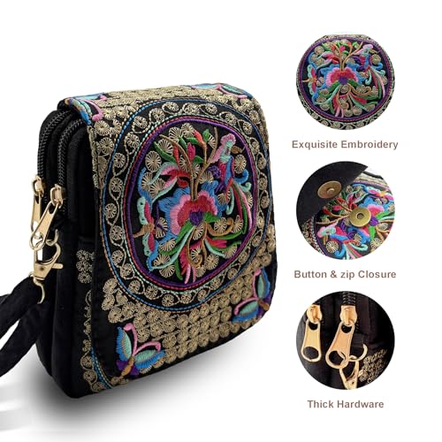 Embroidered Crossbody Bag Boho Ethnic Shoulder Bag Vintage Handmade Women Cellphone Pouch Small Handbag Coin Purse 5