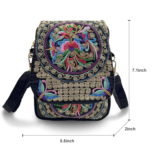 More information about Embroidered Crossbody Bag Boho Ethnic Shoulder Bag Vintage Handmade Women Cellphone Pouch Small Handbag Coin Purse