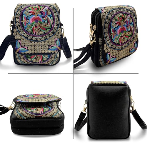 Embroidered Crossbody Bag Boho Ethnic Shoulder Bag Vintage Handmade Women Cellphone Pouch Small Handbag Coin Purse 1