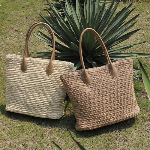 HOXIS Weekender Lightweight Synthetic Straw Shopper Tote Womens Shoulder Handbag 1