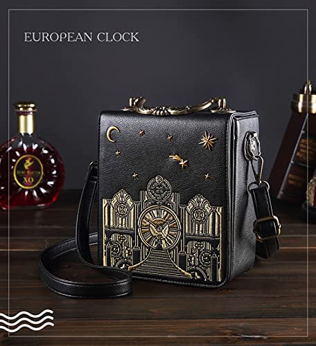 Clock Shaped Purse Women Classic Retro Handbag Crossbody Messenger Shoulder Bag Embroidered Unique NoveltySquare Bag 4