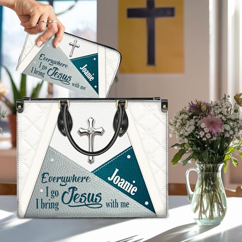 Personalized Leather Handbag for Women – Matching Purse and Wallet Set – Custom Name Church Bags, Gift for Mom 5