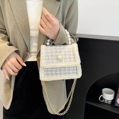 HOT ! Small Tote Bag for Women Mini Square Handbag with Pearl Handle Elegant Ladies Crossbody Purse