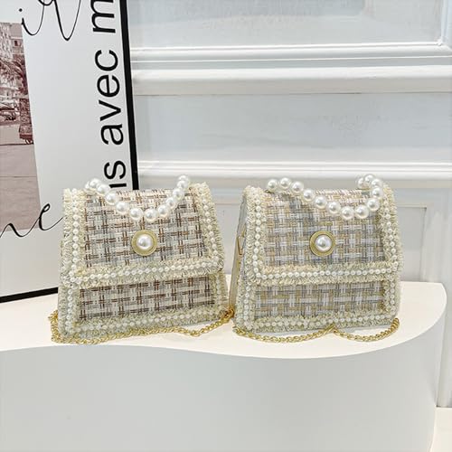 • "Premium Material: This mini womens cross body purses is crafted from premium PU leather with woven tweed cloth decorate on it, with pearl top handle, elegant and fashion"