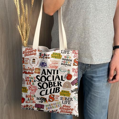 HOT ! MAOFAED Anti Social Sober Club Tote Bag, Sobriety Gift, AA NA Recovery Gift, Sober Life (sober club)