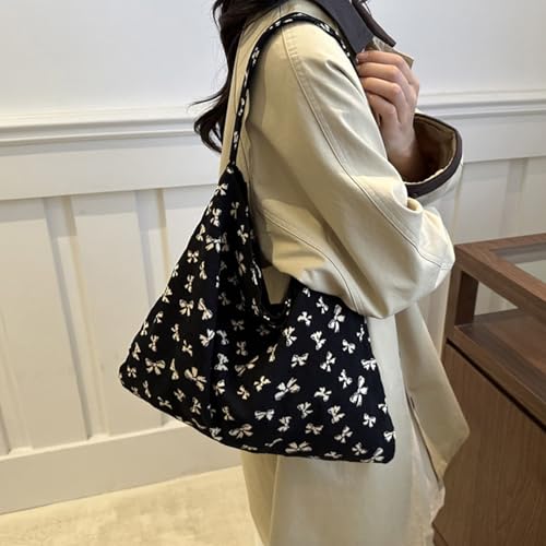 HOT ! Elegant Canvas Shoulder Bag for Women and Girls Bows Handbag with Large Capacity Crossbody Bags for Work Or Leisure
