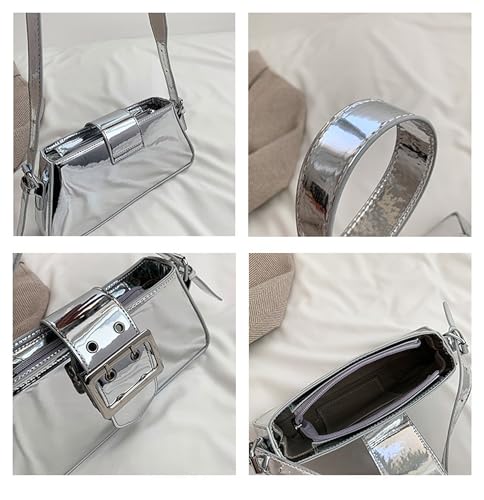 BOLLEY JOSS Small Shoulder Underarm Bag Y2K Shiny Metallic Silver Purse Cute Party Bag 5