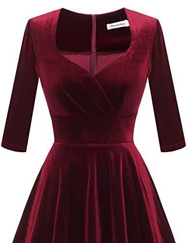 Bbonlinedress Womens Velvet Long Sleeve Formal Wedding Guest Vintage Cocktail Holiday Party Midi Dress 6