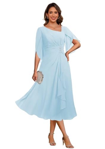 • Features:chiffon mother of the bride dresses with sleeve,elegant simple formal dresses with sequins, flutter sleeves,asymmetrical neck,beaded, ruffles, pleated, tea length mother of groom dress for wedding, a line,chiffon,plus size ,corset back,floor length,built-in bra.
