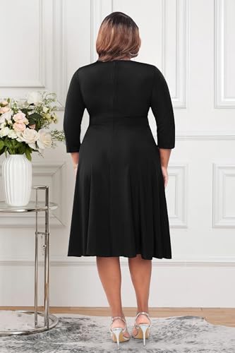 Runwind Women’s Plus Size Midi Dress 3/4 Sleeve Fit and Flare Cocktail Dresses Casusl V-Neck Dress with Pockets 3