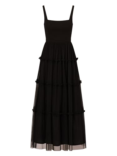 • This midi dress features a fitted bodice with tank straps, a square neckline, and a tiered skirt