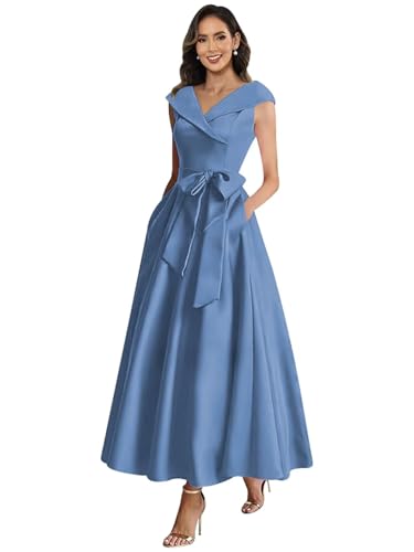 More information about Satin V Neck Mother of The Bride Dresses for Women Long A Line Bow Formal Evening Dresses with Pockets