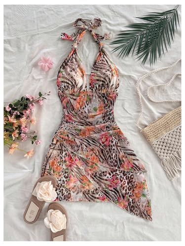 • Feature: Floral Print, Leopard Pattern, Mesh, Tie Knot, Backless, Sleeveless, Layered, Flared Hem, A Line, Ruched, Mini Halter Dresses for Women