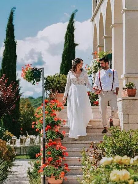 More information about Women's Lace Wedding Dresses for Bride Long Sleeve Boho Bridal Wedding Gowns V Neck Bohemian Wedding Gown