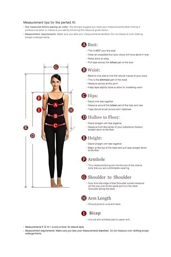 • ❀Size&Custom: please refer to our own dress size chart before buying.if you want to customize dress,please send us all your actual measurements(bust,waist,hips,hollow to floor with heels and height)after you place an order,then we will make the dress fit you perfect.(free customization with no extra charge)
