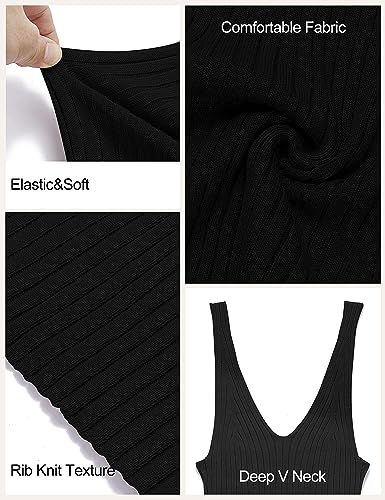 More information about MEROKEETY Womens 2025 Summer V Neck Knit Midi Dress Bodycon Casual Sleeveless Ribbed Party Sweater Dresses