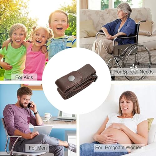 No Buckle Elastic Belt for Men and Women, Invisible Buckle-Free Stretch Belt with Adjustable Fit, Comfortable Waistband for Jeans, Pants, Travel, and Daily Wear BROWN 5