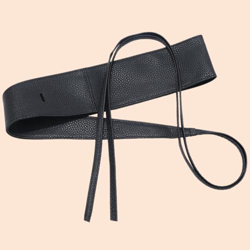 Black Wide Thin Elastic Pu Leather Corset Self Tie Waist Strap Obi Style Cinch Strap Sash Belt Bow Knot Wrap Around Belts for Women s Ladies Dresses Party Special Occasion Formal Prom 6