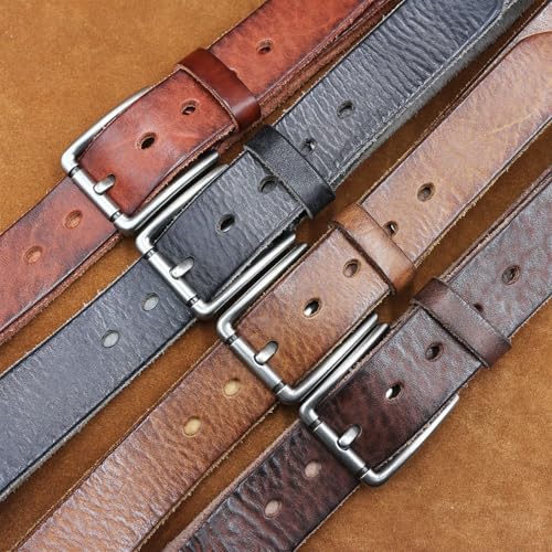 More information about Men's Women's 38mm Classic Buckle Distressed Genuine Cowhide Leather Casual Every Day Belt Strap for Jeans Pants(115cm/45, Black)
