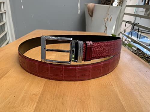 More information about Genuine alligator belly burgundy leather belts for Men, crocodile belly skin Men's belt