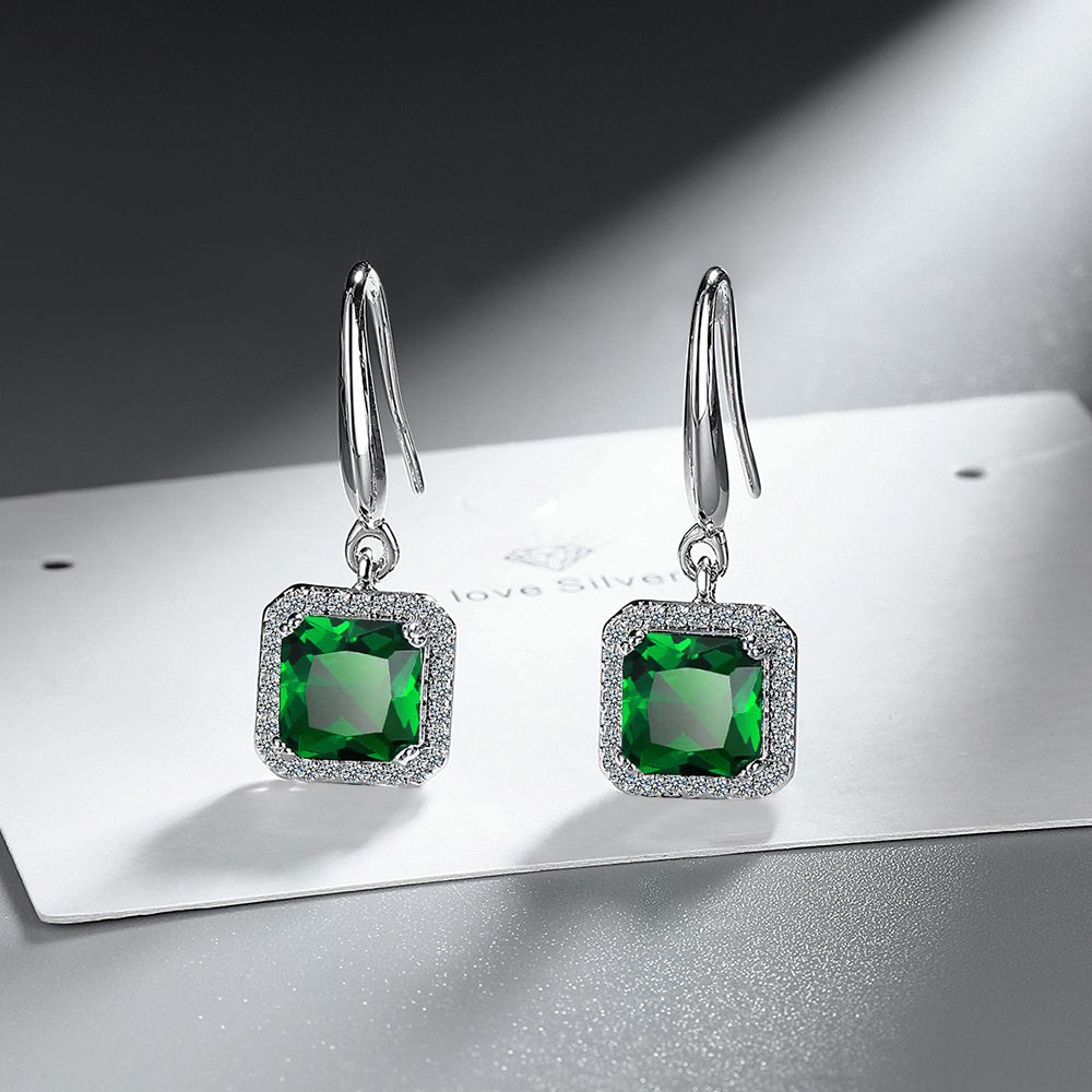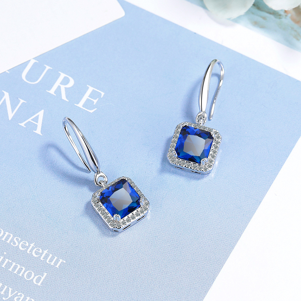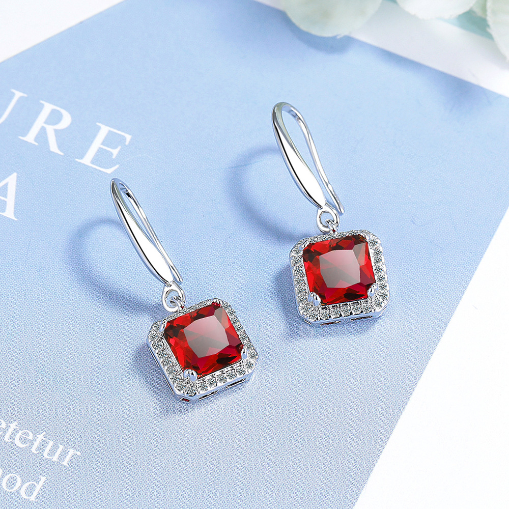 Ins Square Blue Green Red Black Zircon Drop Dangle Earrings For Women Vintage Wedding Engagement Party Jewelry 6